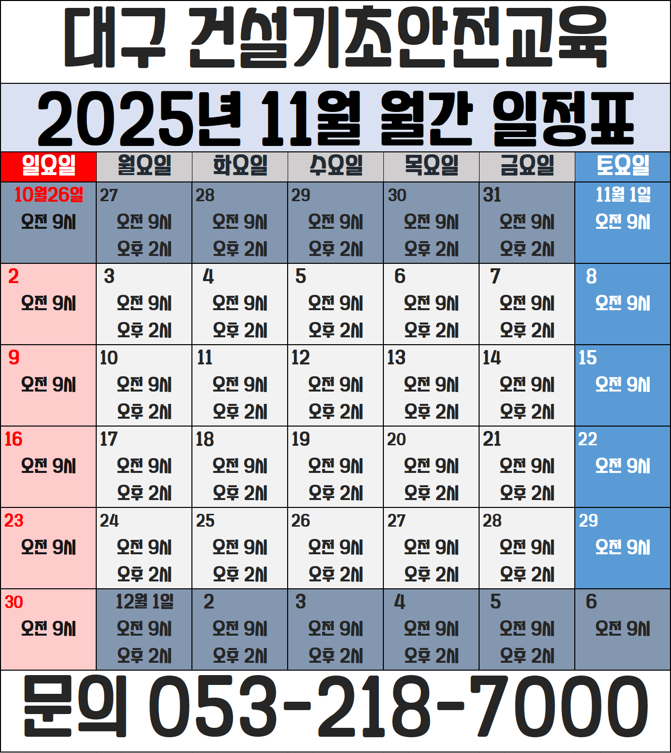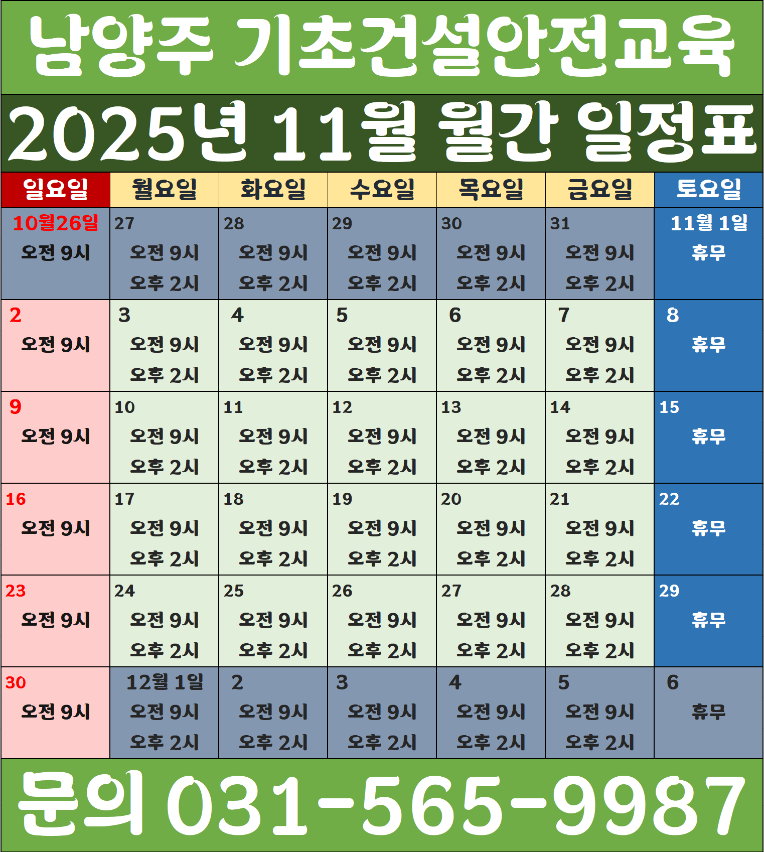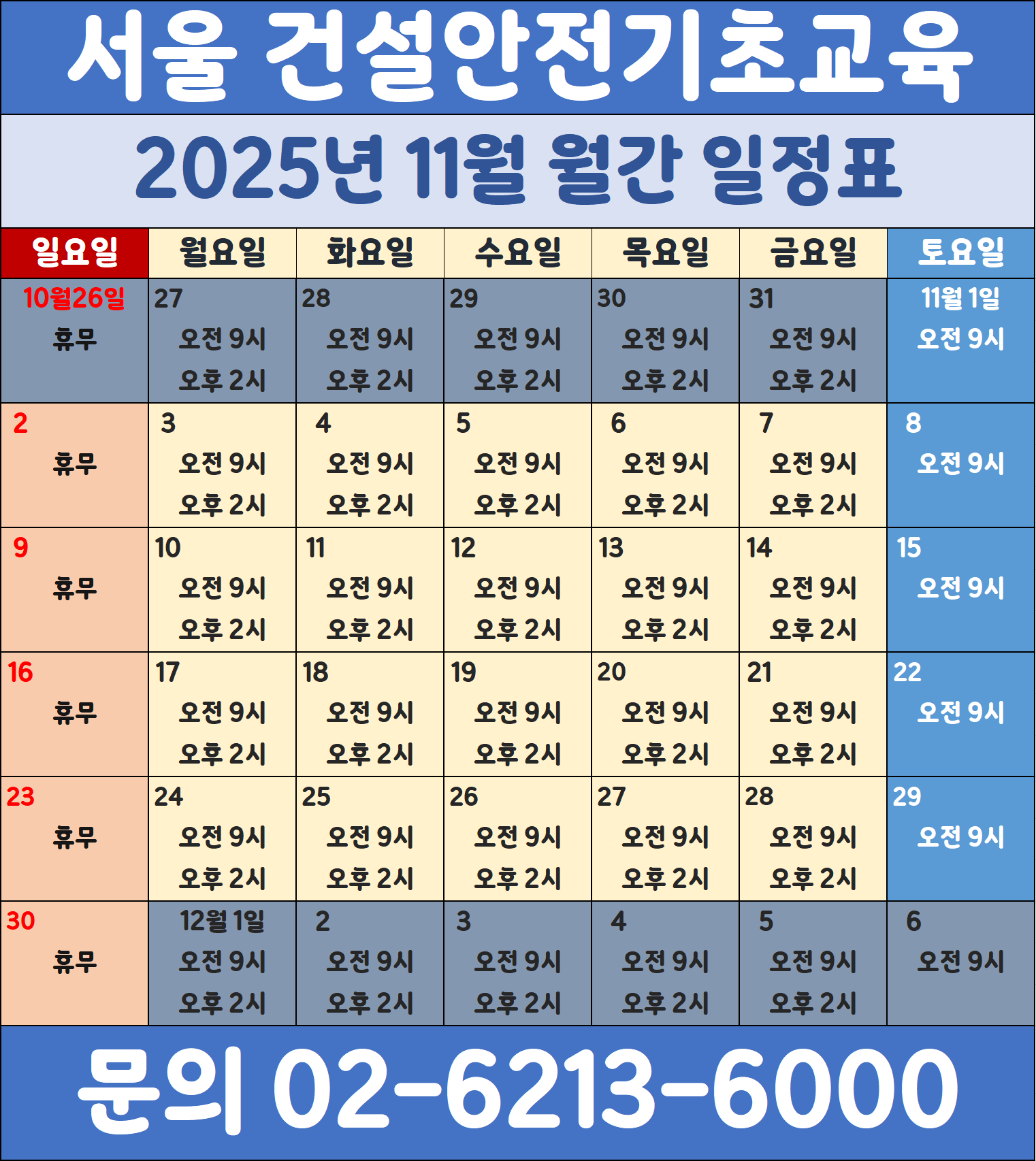 교육시간은 언제든 변경될 수 있습니다. 꼭 전화 문의 부탁드립니다.
